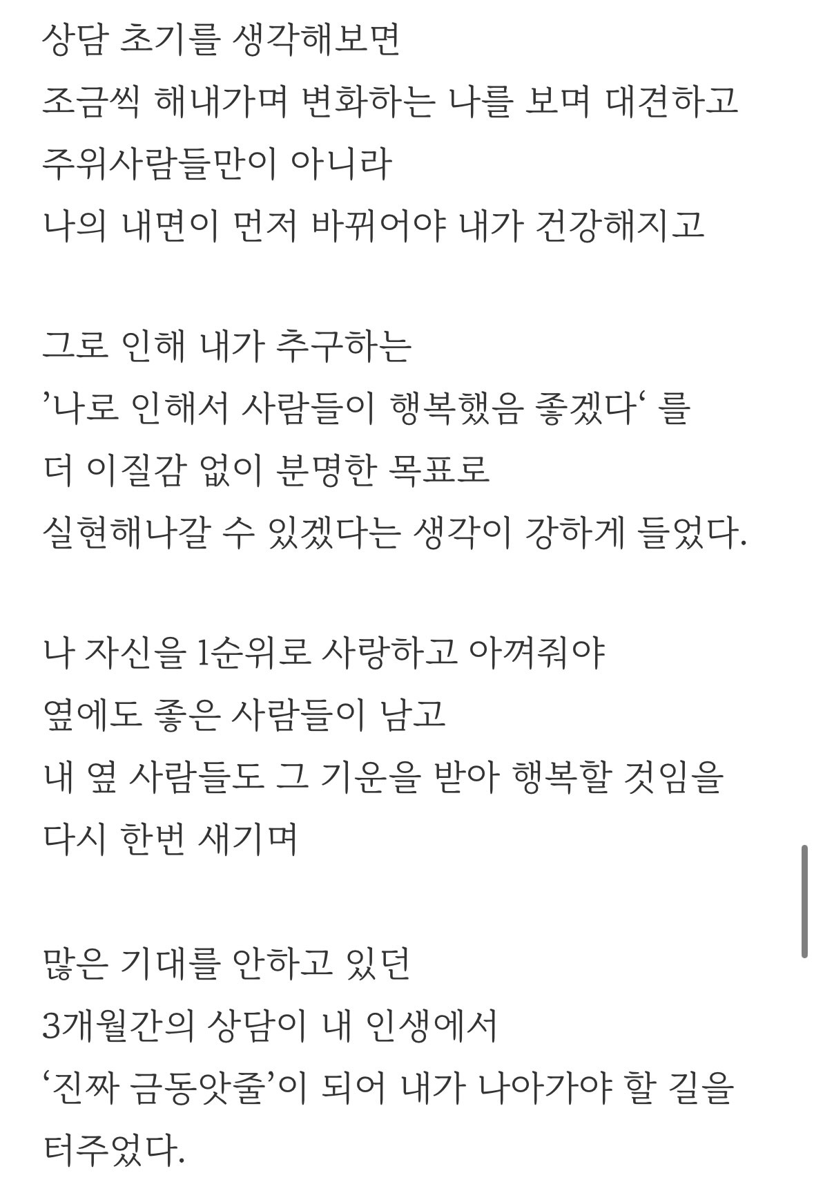 근본적인 문제의 원인을 해결하고 싶은 분들은 심리상담을 받는 것이 적합합니다.